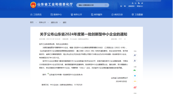 近日,山東省工業(yè)和信息化廳公布了“關(guān)于公布山東省2024年度第一批創(chuàng )新型中小企業(yè)的通知”。山東奧美環(huán)境股份有限公司(以下簡(jiǎn)稱(chēng)奧美環(huán)境)榮譽(yù)上榜。