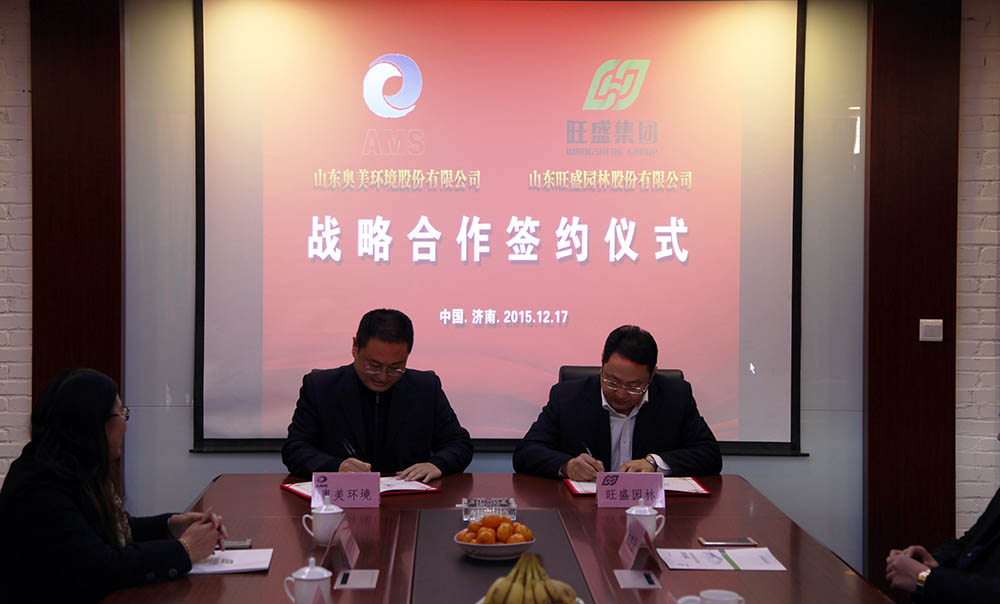 2015年12月17日,山東奧美環(huán)境股份有限公司和山東旺盛園林股份有限公司在濟南《簽訂戰略合作協(xié)議》,正式建立全面戰略合作關(guān)系。