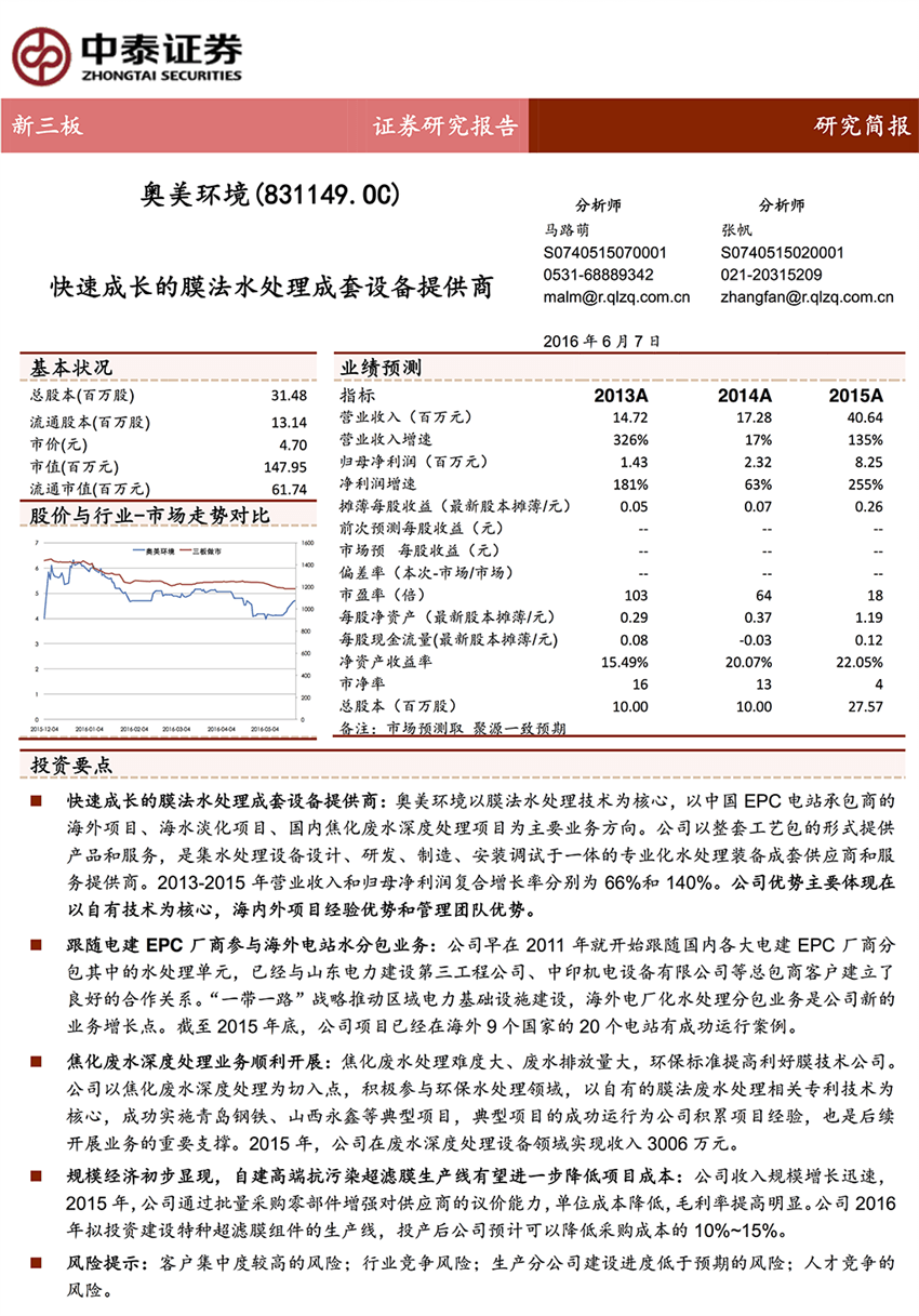 查看原始文檔: 奧美環(huán)境快速成長(cháng)的膜法水處理成套設備提供商