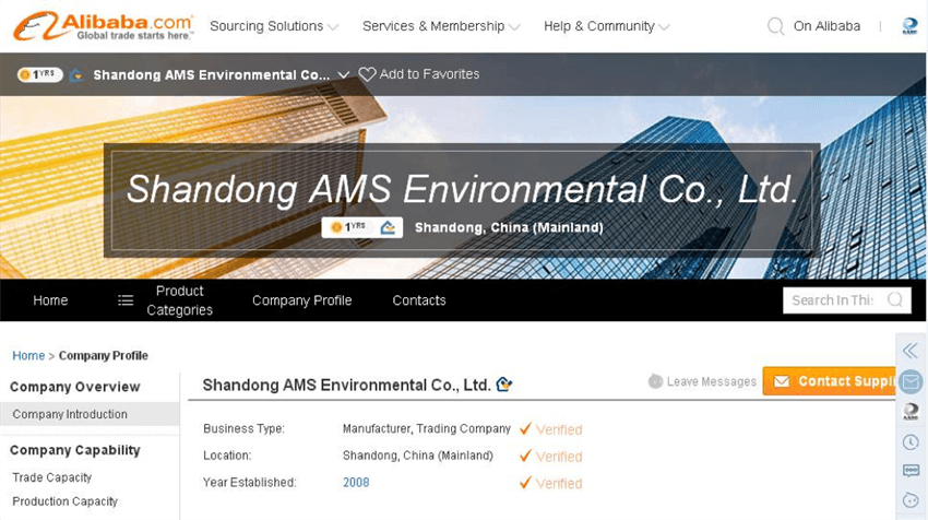 阿里巴巴國際站在世界企業(yè)間B2B電子商務(wù)領(lǐng)域享有盛譽(yù),號稱(chēng)全球最大的商務(wù)交流社區和網(wǎng)上交易市場(chǎng)。公司為進(jìn)一步開(kāi)拓國外市場(chǎng)、加大海外市場(chǎng)的溝通與宣傳,進(jìn)一步提升公司的業(yè)務(wù)量,2017年12月5山東奧美環(huán)境股份有限公司網(wǎng)上店鋪在阿里巴巴國際站開(kāi)店?,F在可以登錄https://www.alibaba.com/(國際站官網(wǎng))搜索Shandong AMS Environmental Co. , Ltd. (公司名稱(chēng))或相關(guān)產(chǎn)品的英文名稱(chēng)查詢(xún)公司產(chǎn)品具體信息。